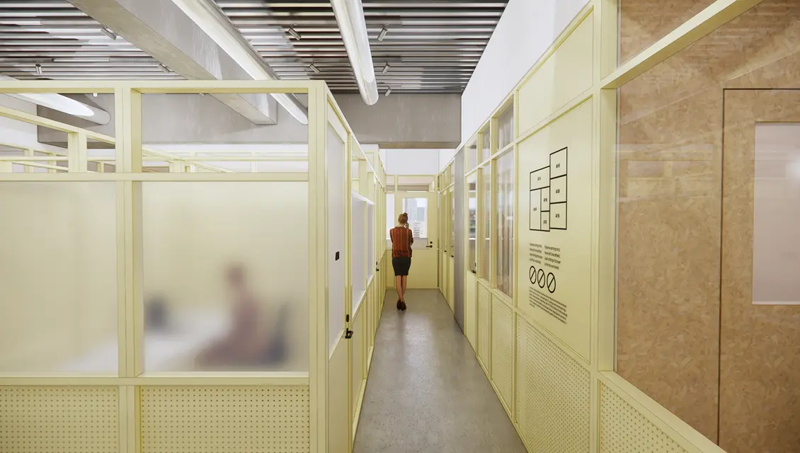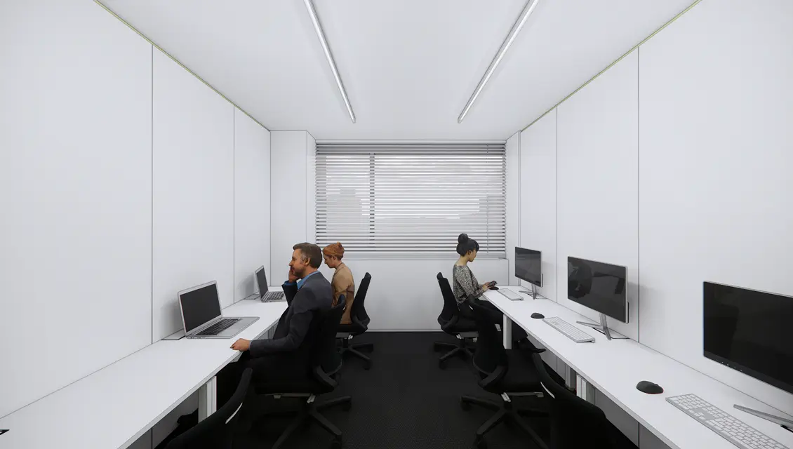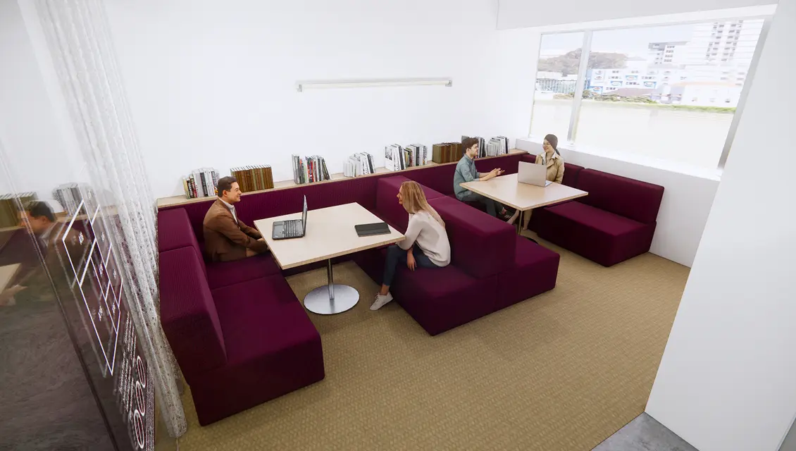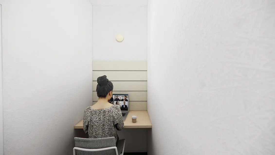 デスク・チェア付きの完全個室で5席~20席までのタイプをご用意。最上階はテラス付きです。